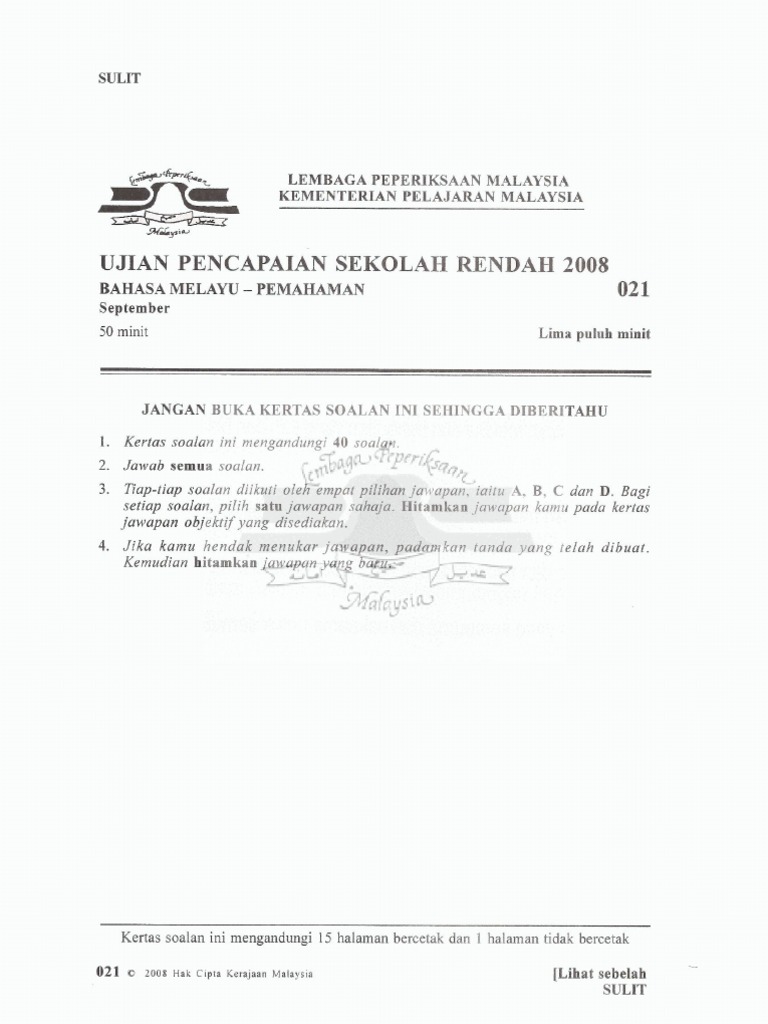 Contoh Soalan Bahasa Melayu Upsr Lembaga Peperiksaan Malaysia Upsr